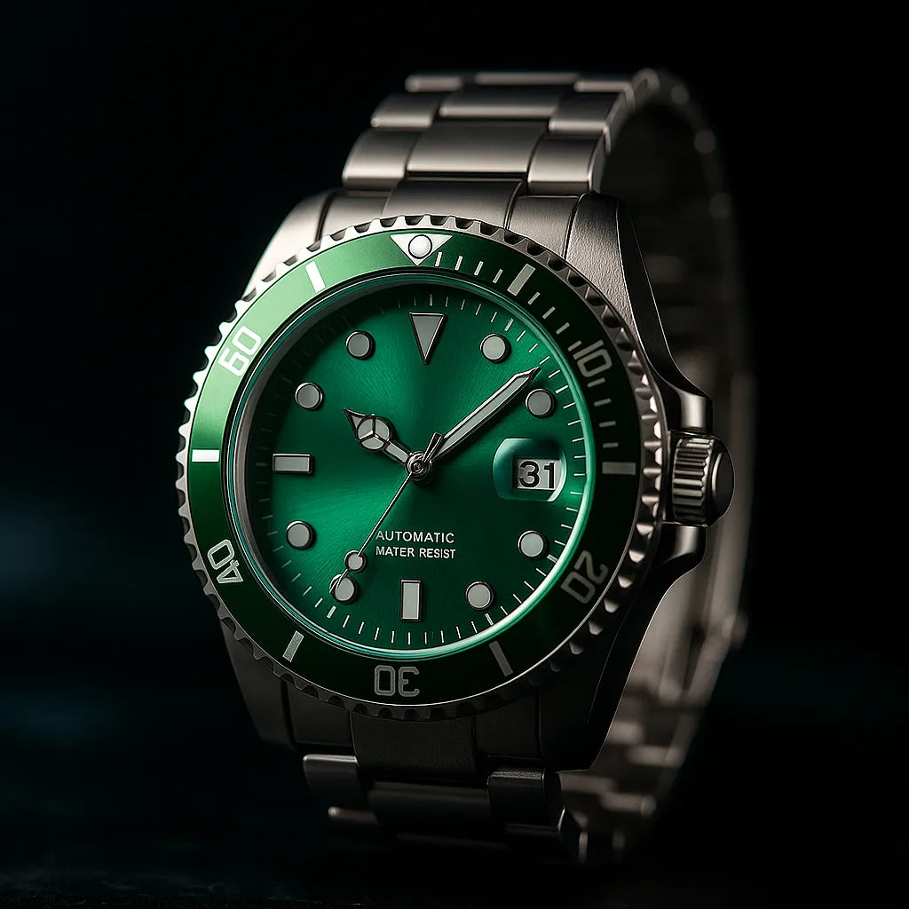 Um design robusto que combina a energia do verde com sofisticação. O (nome) é para quem busca mais do que um simples acessório